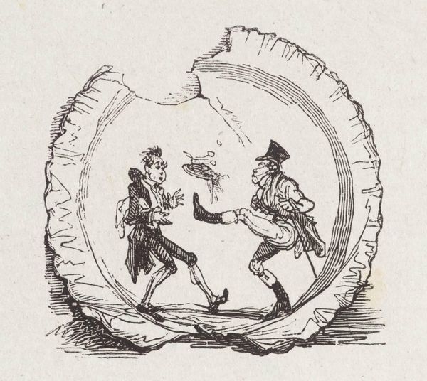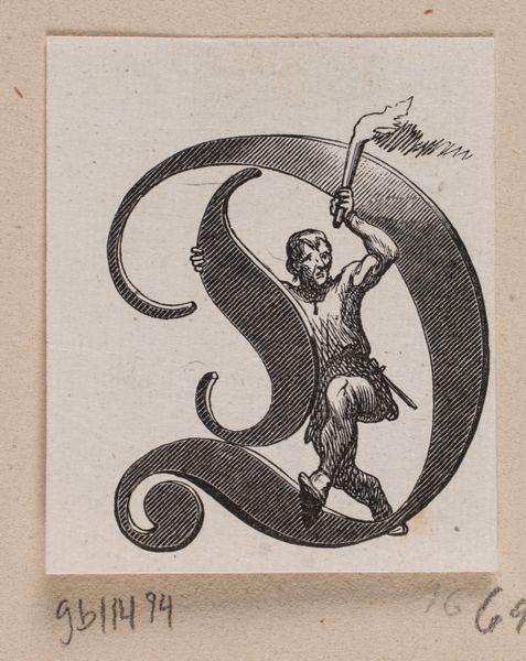 Editor: Here we have an ink drawing from the British School, simply titled "[title not known]". It shows a hand holding a pen, and it looks like the pen is stabbing a ribbon with words on it. What are your thoughts on its possible interpretation? Curator: Well, considering the materials, ink on paper, and the implied act of writing, it makes me think about the labor involved. Who produced the paper, the ink, the pen? What social class did they belong to? Editor: That’s a great point. I was so focused on the image itself, I didn’t consider the means of production. Curator: Exactly! The inscription on the ribbon, "I had a bit of Pork I Stuck it on," suggests a critique of consumption and perhaps waste. It's about more than just the image. Editor: So, you're saying it's a commentary on the society of the time, using everyday materials to convey a deeper message about labor and consumption? I’ll definitely think about that next time. Curator: Precisely. By focusing on the material conditions, we can unlock hidden layers of meaning.