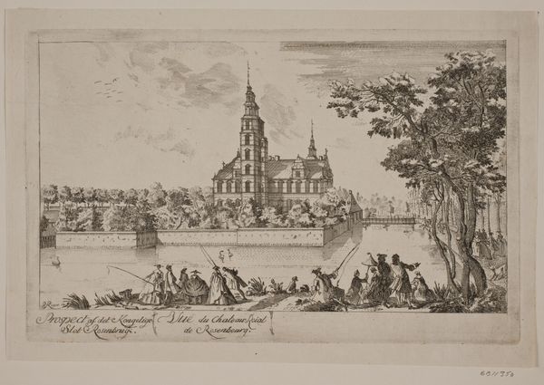 Editor: Here we have a view of the Abbey of Cluny in Mâconnais, a print by François Denis Née. The architectural details are so precise. How do you interpret this work? Curator: Observe how the artist manipulates perspective, creating depth through the receding lines of the gardens. The abbey itself is rendered with remarkable detail. The artist seems mostly concerned with the structural integrity of the landscape. What do you notice? Editor: I see how the linear composition directs my gaze towards the abbey. I appreciate the artist's focus on capturing the geometric forms within the landscape. It all has to do with form and structure, doesn't it? Curator: Precisely. The interplay of light and shadow enhances the architectural elements. The texture achieved through the hatching and cross-hatching adds visual interest. Editor: This formalist approach really helps me appreciate the skill involved in creating this print. Thanks! Curator: My pleasure. It's the artist's considered arrangement of form and space that ultimately resonates.