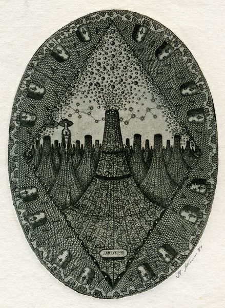 This is Oleksandr Aksinin’s ‘Exlibris of I.Khodorovych,’ made in 1978, and the details in this piece, they’re just phenomenal. Look at the lines, the way they build up to create these textures and shapes. It really gives you a sense of Aksinin’s process, how he carefully, meticulously built this world. And what a world it is! There are rows of watchful owls with these steely, knowing eyes, standing sentinel like librarians. They watch over a landscape that feels both like a fortress and a library. Then there’s that dome above, and how the hatching suggests light. You know, it reminds me a little of Piranesi's architectural prints, the way he creates these complex, almost fantastical spaces. It’s like Aksinin is inviting us into his own personal library, a space of knowledge and contemplation. It’s beautiful, mysterious, and a little bit unsettling. Art doesn't always have to be easy, right? It’s about opening doors, asking questions, and letting your imagination run wild.