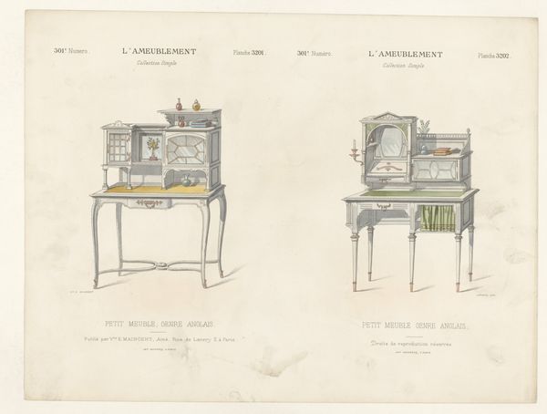 This photograph shows a display of a cabinet and table, made of ebony and inlay, as shown at the German Exhibition in Munich in 1876. Ebony, prized for its dense, dark grain, has long been associated with luxury. Sourced from tropical regions and requiring skilled craftsmanship, it immediately signals wealth and refinement. The meticulous inlay work, precise joinery, and polished surfaces all indicate a substantial investment of time and skill. Note the contrasting light inlays against the dark ebony, creating intricate patterns. The cabinet features detailed carvings of classical figures, further enhancing its preciousness. These are not simply functional pieces of furniture; they are displays of status. They were conceived to impress viewers with the owner’s wealth and refined taste. Ultimately, we can understand this display of craftsmanship and material as a reflection of the social hierarchies and aspirations of 19th-century society.