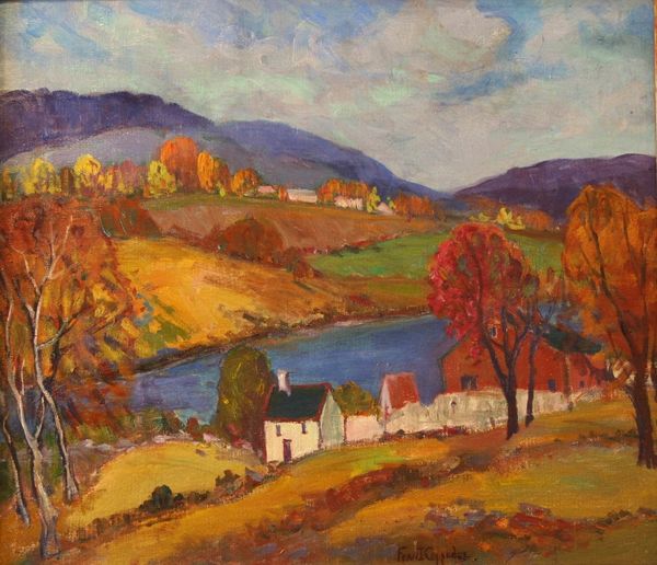 Dumitru Ghiatza made this painting of the Bistrița Valley with oil on canvas, and what strikes me first is the way he fearlessly piles on the paint, each stroke a kind of independent decision. It feels like he’s not just representing a landscape, but building one, bit by bit. Look closely, and you’ll notice how the texture isn’t just smooth and blended. It's chunky, alive. Especially around the trees in the foreground – you can almost feel the weight of the paint mimicking the density of the foliage. And that little white house with the pink roof? It’s like a tiny beacon amidst all that earthy green and brown, a focal point but also a little bit absurd, like a thought that pops into your head unexpectedly. Ghiatza reminds me a little of Van Gogh, not in style, but in the way he’s so clearly in love with the act of painting itself. There's no attempt to hide the process here, and that's the beauty of it.