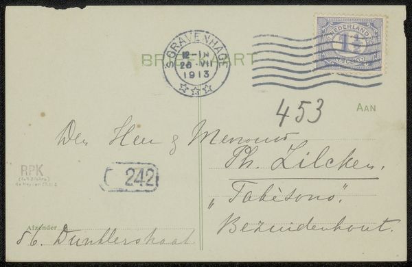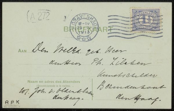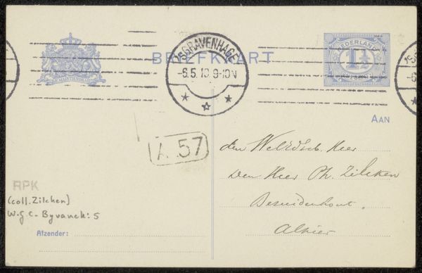 This is a postcard to Philip Zilcken, artist, from G. Roermeester. The royal crest of the Netherlands is emblazoned on the stamp, a crown atop heraldic imagery. This crown is more than mere decoration; it is a symbol laden with historical weight. The crown's circular shape echoes the halo in religious art, suggesting a divine right to rule. But crowns have a deeper significance. They are, in essence, head ornaments—a visual declaration of power and authority. Think of the laurel wreaths adorning the heads of Roman emperors, symbols of triumph and military might. Or even earlier, the horned headdresses of ancient deities, signifying dominion over nature. The crown reminds us that symbols carry emotional and psychological weight far beyond their initial context. They tap into a deep reservoir of collective memory, resurfacing and evolving across time, forever shaping our understanding of power and authority.