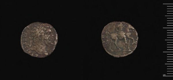 Editor: Here we have a Denarius of Septimius Severus from the Harvard Art Museums. It's a small silver coin, really quite worn. What can you tell me about the power dynamics inherent in such a common object? Curator: This coin, seemingly insignificant, speaks volumes about power, representation, and control in the Roman Empire. Whose image is struck onto its surface, and what does that signify about their control over not only the economy, but also the narrative? Editor: So, the image of Septimius Severus is intended to project power, but it also represents the economic system that upheld his rule? Curator: Precisely. Consider the symbolism of the equestrian figure. Who is excluded from this portrayal of military might? How does this perpetuate a specific gendered and classed narrative of power? Editor: I hadn't thought about it that way before. It is more than just a coin. Curator: Exactly. It's a powerful piece of propaganda, subtly shaping perceptions and reinforcing hierarchies within society.