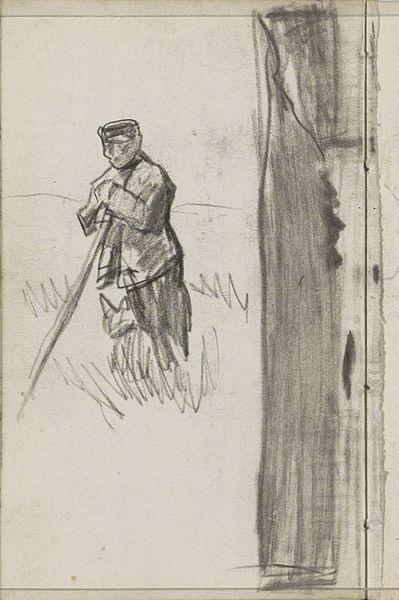 Vincent van Gogh created 'Peasant Digging' using graphite. Van Gogh’s deep empathy for the working class, which was rooted in his own experiences with poverty and his desire to serve others, profoundly shaped his artistic vision. In this period, rural laborers existed at the fringes of a rapidly industrializing society. Van Gogh's decision to portray such a figure was both an act of bearing witness and of social commentary. We see the figure bent over, their body contorted by labor. This posture speaks volumes about the physical toll of agricultural work, the relentless demands it placed on the body, and the deeply human struggle for survival. In his own words, Van Gogh wanted to paint the peasants “as if they were in the same material as the soil they were digging.” This work prompts us to consider how labor, identity, and representation intersect. It invites us to recognize the shared humanity that lies beneath the surface of social hierarchies.