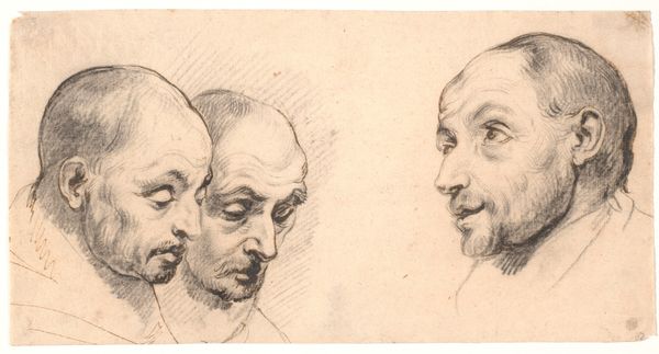 This tiny print of two grotesque heads was made by Wenceslaus Hollar, a prolific 17th-century Bohemian printmaker. Hollar was celebrated for his skill with etching, a demanding intaglio process. The image begins with a metal plate, typically copper, coated with a waxy, acid-resistant ground. Hollar would then use a needle to scratch away the ground, exposing the metal. When the plate is dipped in acid, the exposed lines are etched into the surface. The plate is then inked, and the surface wiped clean, leaving ink only in the etched lines. Finally, the plate is pressed onto paper, transferring the image. Look closely, and you can see how Hollar used his etching needle with incredible precision to render the minute details of the faces. The density of the lines creates areas of shadow and depth, and the cross-hatching gives a sense of texture to the skin. The whole image speaks to Hollar's extraordinary skill and labor, elevating printmaking to an art form.