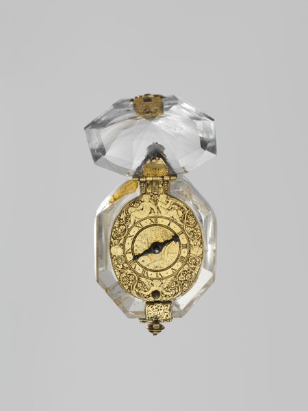 Editor: Okay, so this piece is a watch – simply called "Watch" – made sometime between 1625 and 1645 by Johann Possdorfer. It’s made with metal, glass, and enamel and is currently housed at the Met. I'm struck by how it manages to be both ornate and delicate at the same time, like a little jewel. What stands out to you about it? Curator: It whispers secrets, doesn't it? This isn't just a timepiece; it's a meditation on time itself. The Baroque loved extravagance, yes, but beneath the gold and enamel was always that memento mori, a reminder of life's fleeting nature. See how the light refracts through the glass? Editor: I do. It’s almost jewel-like! Curator: Exactly! It's trying to capture something elusive. Do you think the artisan, Possdorfer, ever looked at his creation and thought about his own time running out? About capturing something lasting? That urge is woven into every gear, every tiny painted flower on its face. Time captured, isn’t it a paradox? Editor: It’s interesting that you focus on time running out. I thought that a watch would just capture time… Curator: But that capturing is so fragile, isn't it? Glass breaks, metal tarnishes. Each tick is also a tock. That's the drama of the Baroque, darling! But what does it mean to you, stripped of all my melancholy thoughts? Editor: Well, I think it’s kind of beautiful knowing that this intricate and ornate creation has survived all this time, despite that fragility. Curator: Exactly! We’re all fleeting. Art endures. Another paradox, wouldn’t you say?