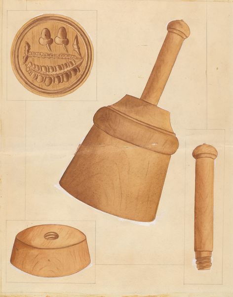 This Butter Mold was rendered in watercolor by Wilbur M Rice, though we don’t know exactly when. I love how Rice depicts this humble object, a tool, with such care and attention. The light wood is rendered with delicate strokes of brown and tan, giving it a warm glow. It’s funny how color can do that, right? The mold itself is the star of the show, suspended in space, while little sketched details hover around it. I’m drawn to the cross-hatched pattern inside the mold, a grid of tiny diamonds waiting to imprint themselves on a pat of butter. It’s a reminder that art isn't just about the finished product; it's about the process. Each mark, each line, each dab of color is a step in a journey. There's something so satisfying about the way Rice shows us the beauty in the everyday. It reminds me of the work of Charles Sheeler, who found poetry in the clean lines of industrial design. Both artists see the world with fresh eyes, revealing the hidden beauty in the things we often take for granted.