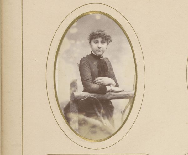 Curator: Here we have a photograph titled "Portret van een jonge vrouw," or "Portrait of a Young Woman," created sometime between 1875 and 1896, attributed to Paul Joseph Nicolas Nestor Schaffers. It's a gelatin-silver print, which was a popular process in the late 19th century. Editor: My immediate reaction is to the overall tonal range. It feels very subdued, with the darker blacks drawing focus to the young woman’s visage framed within that lovely oval. The symmetry of the image is quite calming, too. Curator: That subdued tone and formal pose are very much in line with portraiture conventions of the time. Photography had become more accessible, allowing a broader segment of the population to document their image, participate in popular portraiture trends, or commemorate certain achievements. Editor: I find the focus on texture interesting—look at the detailing in her hair and dress. There's this tactile quality to it all despite the medium. The romantic style almost softens the photograph into looking like a charcoal drawing. Curator: Exactly. Studios and photographers understood they were competing against more established, traditional forms of portraiture, and strove to produce portraits that emulated painting and drawing by incorporating similar soft lighting and tonal effects. Editor: I do wonder what the choice of oval matting contributes. Does it symbolize something beyond just conventional presentation? Curator: Well, framing in general dictates how we, the public, view art, but oval matting might have simply been considered an elegant way to offset rectangular photograph prints for middle class patrons desiring fashionable photographic presentation in the 1880s and 90s. Editor: It is an elegant rendering. Though, the gelatin silver process can lend a bit of warmth to cooler subjects… I am interested in that too! The surface quality of that gelatin. Curator: In this time, most photographs existed because there was a societal desire for formal portraits. Perhaps what’s important is not only who is pictured, but how, where, when and, maybe most importantly, why! Editor: True. When you examine all its formal elements, one recognizes there's a complex interaction happening between medium and artistic desire that extends far beyond capturing a likeness.
