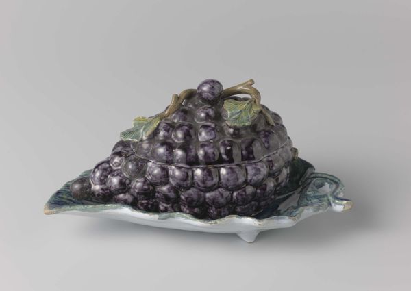 This is a tureen in the form of a melon with a sunflower saucer, made by De Porceleyne Byl. The piece immediately strikes you with its vibrant yellow glaze and organic forms, which evoke a sense of playful sophistication. The artist employs vertical lines to mimic the ridges of a melon, enhancing the tactile illusion of the form. Notice how the handle, crafted as intertwining stems, merges seamlessly with the floral decorations, blurring the distinction between function and ornament. The sunflower saucer, with its radiating petals, not only supports the tureen but also serves as a visual echo of the sun, enhancing the naturalistic theme. Such elaborate table settings were designed to amuse and impress, transforming dining into a theatrical experience. Here, the tension between nature and artifice invites us to consider how objects shape our perception and experience of the world.