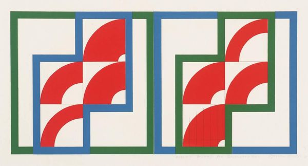 Curator: First impressions, here? Because honestly, I’m just sort of seeing building blocks. Editor: Well, hello there, fellow art enthusiasts. Today, we are looking at "Odalisca com Escrava II, segundo Ingres" by Julio Pomar. Created in 1969 using acrylic paint, it’s a striking example of Pomar’s ventures into geometric abstraction. Curator: Okay, yes. "Abstraction" makes much more sense. Before you told me that I was getting color-field vibes. So those aren’t haphazard rectangles and squares floating on that field of bright azure blue. It’s Ingres, you say? How cheeky. It sort of turns his orientalist fantasy inside out, making it flat and dimensionless and dare I say, a bit of a put-on. Editor: That’s precisely what gets me excited! The radical deconstruction, and really, democratizing of this classical image through very accessible and almost playfully naive geometric forms. The vibrant, synthetic polymer of acrylic frees it completely. This reproduction using Pop Art gives us pause to reconsider Ingres and the nature of labor. Curator: How so? Editor: The original painting is hyperrealistic with details that make one see hours upon hours of labor being poured into every nook and cranny of it. Every fold on a garment of the sitter and on the divan, jewelry and finery, and on the faces of his sitters. Ingres, the maker of his own art versus those, his sitter and slave in a hyperrealistic, luxurious moment is very class driven and labor obsessed. It smacks the viewer of commodity fetishism, that hides the labor process that made them. Pomar using modern material like fast-drying synthetic, challenges all of that. Curator: So you are implying that "material trumps meaning?" And that’s interesting! This is an engagement with production, I now see, in its essence: Ingres' detailed realism versus the immediacy and accessibility of acrylic and geometric abstraction. In other words, who gets to "paint what, how and for whom"? Editor: Exactly. And for me it is ultimately less about Ingres himself, and much more about this act of reclamation using Pop Art for art of the "people". Curator: Wow, that actually changed my reading entirely! It just shows that a piece can speak volumes depending on the context one chooses to adopt. And, the material it is made out of of course! Editor: It certainly does. Let us all celebrate the joy of interpreting works in art and re-reading all sort of symbols they are full of.