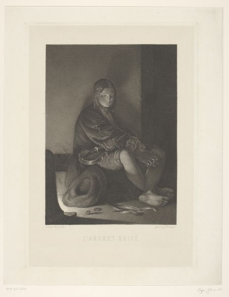 Adolphe Mouilleron captured this scene of a begging violinist in an etching, a medium known for its stark contrasts, perfectly suited to convey the desolation of his subject. Here, the figure of the beggar becomes a potent symbol of human suffering. Notice how the girl sits hunched against the cold stone wall, her eyes cast downward, a gesture echoing depictions of Melancholia throughout art history. Consider Dürer's engraving: the seated figure, surrounded by instruments of creation, yet consumed by despair. This pose transcends mere representation; it embodies a profound emotional state. The begging bowl at her feet, an age-old symbol of destitution, is a modern day take on the ancient Greek 'obol for Charon', where the coin paid passage to the underworld. The motif resurfaces time and again, each iteration carrying the weight of its predecessors. Art, like memory, is a layered and cyclical phenomenon. It continues to resonate across time and cultures.