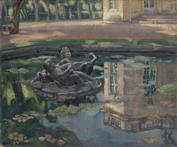 Curator: Sargent’s “A Marble Fountain at Aranjuez, Spain,” painted in 1912, captures a serene corner of the Spanish royal site, reflecting both baroque grandeur and impressionistic light. Editor: Oh, wow, that's really… thick, isn't it? I mean the paint. The impasto practically leaps off the canvas. It’s so present, it makes the old fountain seem vibrantly alive again. Curator: Sargent often worked en plein air, embracing spontaneity. This piece particularly demonstrates his interest in depicting fleeting light effects on solid, formal structures like fountains and gardens which themselves were potent symbols of power and leisure. Editor: I get that sense of fleeting light, like it's all a mirage. It almost melts the details—the ornate carvings of the fountain are just suggested. Did he do this quickly, do you think? It has this ephemeral feeling. Curator: Likely yes, quickly but deliberately. Sargent’s bravura brushwork allows him to translate the complex ornamentation of the baroque into the language of impressionism. Also the composition! Notice how he crops the scene, offering us only a fragment. He's playing with the expectations associated with official landscape paintings. Editor: Yeah, it's as if he's zoomed in with his eye. This partial view also gives the impression that we're stumbling upon this tranquil place, as if catching a secret, beautiful moment—perfect and gone the next instant. It’s less a monument, more a whisper. Curator: Exactly. This shift in viewpoint reveals broader societal changes. In painting gardens not to promote their owners or convey political allegory, but for their intrinsic artistic possibilities Sargent mirrors broader trends in modern painting at this moment. Editor: It makes me want to just sit right there, listen to the water trickle, and soak it all in. I think its almost overwhelming simplicity makes it such a deeply effective picture. Curator: Indeed, there's a beautiful convergence here. What initially seems like a quick sketch reveals thoughtful considerations about artistic traditions and evolving perspectives. Editor: For me it’s about how he's made the old new, again, somehow.