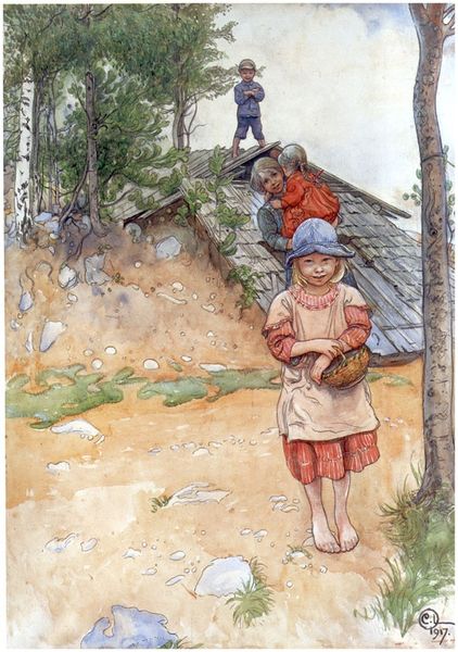 This piece, "Is any cozened of a tear Which as pearl disdain does wear," was made by Eleanor Fortescue-Brickdale, but we don’t know exactly when. The soft watercolour palette, along with the Pre-Raphaelite treatment of nature, make this piece seem like a medieval daydream. An angel with rainbow wings is held captive in the stocks. It’s as if Fortescue-Brickdale is asking us to consider how the imagination can be imprisoned. The angel's red feet are such a striking contrast to the muted palette, and I can almost feel the tickle of the grass between my own toes. The feathered treatment of the foliage and grass in the foreground evokes the feeling of a tapestry. I wonder what William Morris would have made of it? Fortescue-Brickdale seems to suggest that there is a kind of freedom that can only be found in captivity.