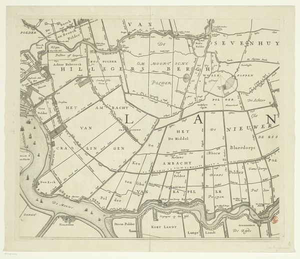 Johannes Vinckboons created this section of the "Map of the Polder Board of Schieland" in the mid-17th century. It reflects a society grappling with land, water, and control, charting not just geography but also human intervention. Consider how the map portrays the relationship between the Dutch and their environment, a struggle to reclaim and manage land. The detailed delineation of polders—land reclaimed from water—speaks to the period's economic ambitions. We can read the landscape as a stage for human activity, marked by boundaries, fields, and settlements. Vinckboons' map is more than just a practical tool; it's a mirror reflecting the values of a culture that sought to master its environment, a testament to the period's social and economic aspirations. This detailed rendering of the landscape evokes a sense of both control and vulnerability. It serves as a reminder of the constant negotiation between human ambition and the forces of nature.