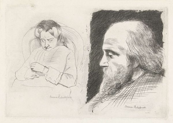 Carel Adolph Lion Cachet made this sketch of a bearded man in a chair with pencil on paper. The rapid lines suggest the artist was more interested in capturing the essence of the figure than in creating a detailed portrait. Cachet was Dutch and lived through a period of significant social and political change. In the late 19th and early 20th centuries, the Netherlands saw the rise of socialist and labor movements. While this sketch doesn't explicitly engage with these movements, it's worth considering the social context in which it was made. Was Cachet interested in depicting everyday people? Was he making a statement about class or social status through his choice of subject matter? The Rijksmuseum, as a national institution, plays a role in shaping our understanding of Dutch art and history. To fully understand this work, we might look at Cachet's other drawings and paintings, read his personal letters, and research the social and political climate of the Netherlands during his lifetime.