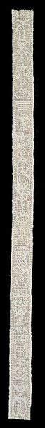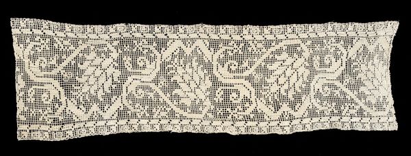 Editor: We’re looking at an exquisite length of textile here at the Minneapolis Institute of Art. Simply called "Band," it dates back to around the 16th century, created by an anonymous artist. What strikes me is how delicate and almost ephemeral it seems, like captured moonlight. It's incredible how something so old can still feel so fragile. What catches your eye in this piece? Curator: It whispers, doesn't it? A soft, historical whisper. For me, it’s all about the painstaking process. Imagine the focus, the sheer dedication it took to create this lacework band, stitch by tiny stitch, with no mistakes allowed! We think of the Renaissance as grand sweeping canvases and soaring sculptures, but it was also made of moments like this: quiet, detailed artistry in the service of beauty and adornment. Editor: It really puts into perspective the skill and patience of artisans from that time period. The geometric patterns intertwined with the organic ones are also incredibly interesting. Do you think that contrast was intentional? Curator: Absolutely, and what a fabulous question! That push and pull – the tension between rigid geometry and the free-flowing forms of nature – is quintessentially Renaissance. Think of the carefully planned gardens contrasted with the untamed wilderness. Everything had its place, and art explored those boundaries. It's a tiny revolution on a strip of lace! Doesn't that boggle your mind? Editor: It truly does. It's like this small piece of fabric holds a mirror to an entire era. Thank you so much for your insightful reading. Curator: My pleasure. It’s these little echoes of the past, aren’t they, that help us hear the present a little more clearly.
