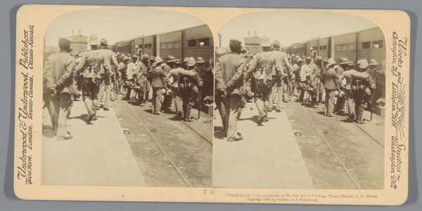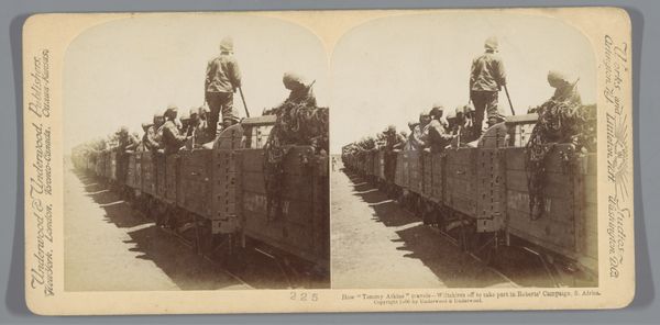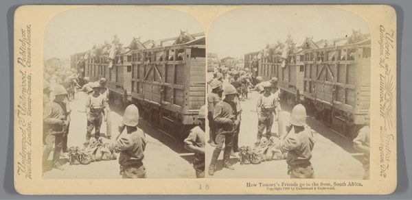 This photograph shows a train wagon with wounded soldiers by the Orange River, South Africa. It was made by an anonymous artist, using photography. The image's materiality is a key part of its message. The photograph is not just a representation of a scene, but also a record of the technological processes of image-making at the time. Photography had become increasingly industrialized, and the mass production of images like this one allowed for a wide dissemination of information and propaganda. The use of photography in this context also raises questions about the ethics of documenting human suffering and the role of the photographer in shaping public opinion about labor, politics, and consumption. By focusing on the materials, making, and context of the artwork, we can gain a deeper understanding of its full meaning, challenging traditional distinctions between fine art and craft.