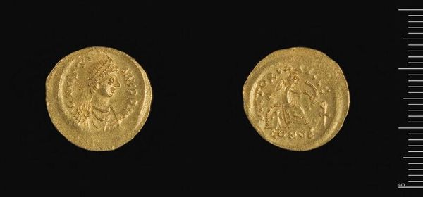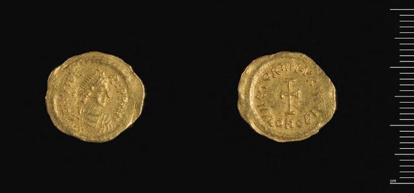 Editor: Here we have the Coin of Herakleios, created by Abd-al-Malik of the Umayyads. It’s such a tiny object, made of gold, but it looks heavy with history. What do you see in this piece? Curator: This coin presents a fascinating intersection of power, religion, and cultural appropriation. Abd-al-Malik, despite leading a burgeoning Islamic empire, initially adopted Byzantine coinage. Why maintain the visual language of a conquered power? Editor: Was it simply a matter of practicality? Curator: Perhaps initially, but consider the statement it makes. It speaks to the complex negotiation of identity, where the conqueror appropriates and adapts the symbols of the conquered, blurring lines of power and legitimacy. What does it mean for a new empire to adopt the visual vocabulary of the old? Editor: It's not just about functionality, it's about making a claim. Curator: Precisely. And this coin invites us to consider the visual strategies employed by emerging empires to establish their dominance. This challenges a simplistic understanding of power dynamics. Editor: This really helps me see the coin as more than just currency, but also as a complex symbol.