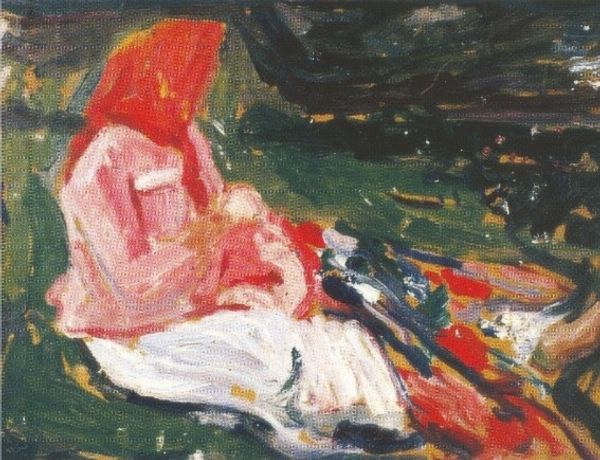 Curator: So here we have Theophilus Brown's *Untitled (Nude with trellis and landscape)* from 1961, rendered in oil paint. Editor: It has a hazy, dreamlike quality to me. It's like glancing at a memory. What elements jump out to you? Curator: It's striking how Brown utilizes such broad, expressive brushstrokes. Look at the way the trellis isn’t just depicted, it's *built* with pigment. And the implied labor in creating that surface—the sheer quantity of paint applied, pushing beyond representation to almost sculptural form—how does that strike you? Editor: I see what you mean. It’s like the paint itself is a raw material being manipulated. Is the process as important as the final image? Curator: Absolutely! Brown pushes the boundaries between traditional easel painting and a kind of tactile construction. It’s a post-war moment, think about the availability of materials, the expanding art market... what’s being consumed? Not just the final ‘art object’ but the very *idea* of art production. How is this different from a typical landscape we’ve seen prior? Editor: It feels… less refined, more immediate. The canvas itself becomes a site of action. Instead of focusing on representing the world, it's calling attention to how it's made. I'm rethinking how to consider artistic labor in art history. Curator: Exactly! We are challenging those hierarchies by recognizing the physicality, the making of it all. I’m taking away with a better grasp on post-war material concerns in art making.
