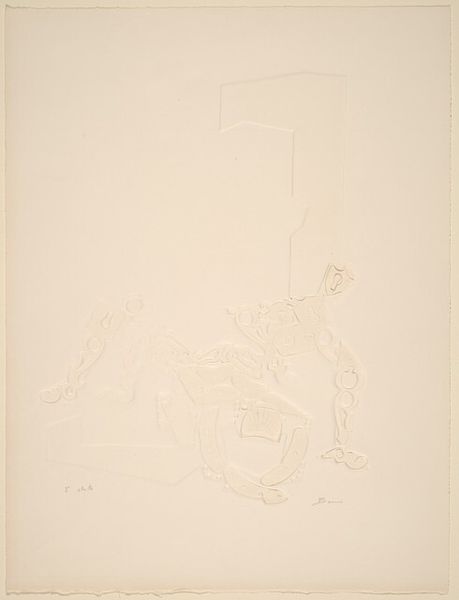 Editor: Here we have Paolo Boni's "Omaggio a Braccelli (3rd state)" from 1968, a drawing and print composed of etching and graphite. It feels like a ghost of an image, these very faint geometric figures. How do you interpret this work? Curator: What strikes me is the dialogue between homage and critique. Boni's reference to Braccelli, likely Giovanni Battista Braccelli, a 17th-century artist known for his abstract figure drawings, positions this work within a lineage of challenging representational norms. What socio-political anxieties might Boni be grappling with in the late 60s that lead him to revisit and reimagine Braccelli's figures in such a deconstructed way? Editor: Anxieties about representation, that’s interesting. It definitely doesn’t feel celebratory. It’s almost like these figures are dissolving, or being erased. Curator: Exactly. Consider the social upheaval of 1968 – protests against the Vietnam War, civil rights movements, student activism. The established order was being questioned. Could this etching be a visual metaphor for dismantling traditional power structures and modes of seeing? Editor: I see what you mean. The fragility of the lines, the way the figures are almost hidden... It speaks to a certain instability, a questioning of forms. Curator: And think about the artistic movements of the time, too. Conceptual art was gaining traction, emphasizing the idea over the execution. Does Boni perhaps suggest a move away from concrete, fixed identities towards more fluid and abstract representations of the self? Editor: It feels more relevant now, thinking about identity and representation as continually evolving and being questioned. Thanks! Curator: Indeed. Art is always in dialogue with its present, isn’t it? Hopefully, this piece urges all of us to rethink our own socio-political context.