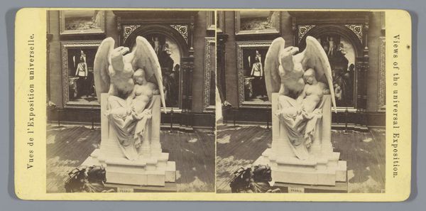 This stereo card, or stereograph, shows a sculpture of Flora in the gardens of the Villa Durazzo-Pallavicini in Genoa, and was made by Alfredo Noack sometime in the late nineteenth century. The image has been created by mounting two nearly identical photographs side by side, giving a three-dimensional effect when viewed through a stereoscope. Stereo cards like this one were a popular form of entertainment and documentation in the Victorian era. The photographic process, while relatively new at the time, was already quite industrialized, allowing for mass production and distribution of these cards. This process democratized image consumption, yet it relied on the labor of photographers, printers, and distributors, often working in less-than-ideal conditions. The popularity of stereo cards also speaks to a burgeoning culture of tourism and the commodification of scenic views and artworks. The image reminds us that art and craft are interwoven with broader social and economic contexts.