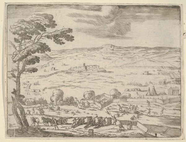 Israel Silvestre produced this print of Fréjus in France in the mid-17th century using etching. The image presents us with a view of the ancient Roman city, framed by a prominent tree and figures in the foreground. Silvestre was one of the leading printmakers of his day, and he specialized in topographical views of cities and landscapes. This print reflects the cultural and political interests of the French court under Louis XIV. The depiction of classical ruins speaks to the era’s fascination with antiquity, a fascination cultivated by institutions such as the Académie Royale d’Architecture, founded in 1671. The imposing architecture and controlled composition reflect the desire to portray France as a powerful, orderly, and civilized nation. Understanding this print requires researching both the artist's biography and the political context in which he worked, using sources like letters, archival documents, and contemporary accounts. Through this kind of contextual investigation, we can better understand the complex interplay between art, power, and cultural identity in early modern France.