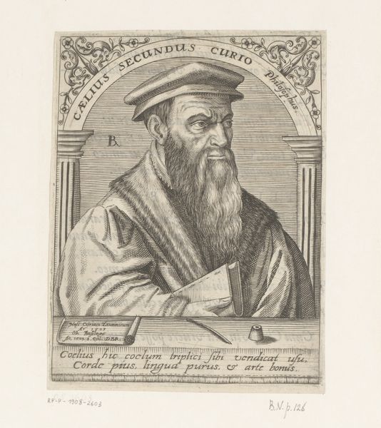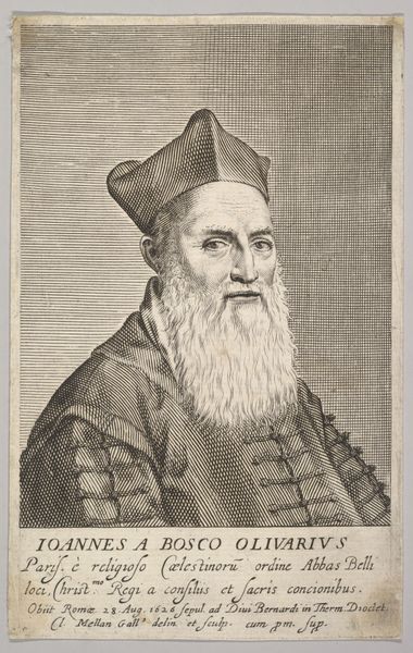 Nicolas de Larmessin I created this portrait of Polidoro da Caravaggio as an engraving. The composition is dominated by the subject's stern gaze, framed by a meticulously rendered beard and fur-lined cloak. The lines are sharply defined. The engraver uses hatching and cross-hatching to model form and texture. The contrast between light and shadow accentuates the contours of the face and the folds of the clothing. This suggests a stoic yet contemplative character, fitting the Renaissance ideal of the artist-intellectual. Such engravings served as a means of disseminating images and ideas across Europe. This reflects the period’s interest in portraiture as a means of documenting and celebrating individual achievement. Larmessin's print offers insight into the cultural values of the time, where the representation of artistic and intellectual figures played a crucial role in shaping collective memory and cultural identity.