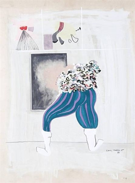 Curator: Duncan Grant’s “Standing Woman” at the Tate presents an intriguing image; a woman hanging laundry against a boldly simplified landscape. Editor: It feels light and domestic but there's a tension between the woman’s gesture and those heavily outlined, almost oppressive, framing elements. Curator: Grant, as a member of the Bloomsbury Group, was deeply influenced by Post-Impressionism. You can see it in the flattened picture plane and the use of color blocks to define space. Editor: Those colors are so evocative of leisure and privilege, yet the subject is engaged in very mundane labor. What does this juxtaposition reveal about the artist's social context? Curator: It highlights how domesticity and art could coexist within that Bloomsbury sphere, challenging traditional hierarchies of subject matter. Editor: It makes me consider the unseen labor that supports these artistic communities. Art exists within social and economic structures, shaped by them. Curator: That's a valuable connection to draw. It prompts us to consider whose stories are told and how. Editor: Exactly. It makes you question what Grant leaves out, as much as what he includes.