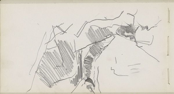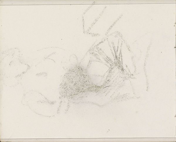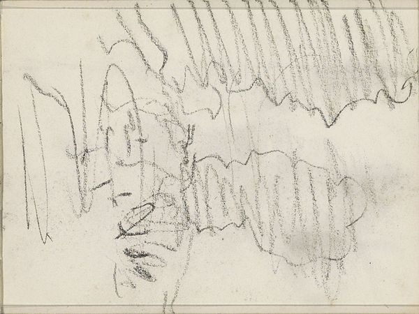 Curator: It’s almost ghostly, isn’t it? Like a memory half-formed. Editor: You’re right! Before us is a piece titled "Abklatsch van de krijttekening op blad 5 recto" – a frottage, in graphite, crayon, and pencil on paper by Isaac Israels dating from 1875 to 1934. It is now held in the collection of the Rijksmuseum. Curator: Frottage… Oh! Like rubbing a pencil over paper on a textured surface? Sort of like childhood explorations suddenly become high art? I like the magic in that, turning accidental discovery into intention. Editor: Exactly. It stems from a technique linked with Surrealism that gives the impression of a dreamscape. If we consider the turbulent politics and rapid urbanization of the time it was produced, the drawing may be a subconscious reflection of such uncertainties. The ghostly forms suggest that the only thing solid, is an awareness that there's nothing of substance to depend on. Curator: That gives the impression that Israels intended to convey some form of turmoil. I can only offer my speculation of course. The lack of sharp lines is indeed telling; perhaps it wasn't important to fully develop the image because it could only amount to a representation, never the actual object. Editor: Right, right. Like reality is fleeting and elusive, and maybe trying to capture it directly is pointless? So, you hint at it. That’s the genius! Israels is sidestepping expectations; he wants you to supply some narrative based on your own lived experiences! Curator: Precisely, making the viewer part of the process, forcing one to engage! Even today, one could interpret it as being a veiled comment about the media... the art world even. So many readings. Editor: I never considered that before. Well, whatever it may represent, I like how it captures impermanence in such a simple fashion. What about you? Do you see it differently now, having explored its context a little more? Curator: Yes, in that light, this sketch feels far more complete, maybe more revolutionary, than any polished history painting of that period ever could. Thank you.