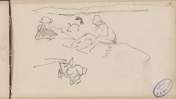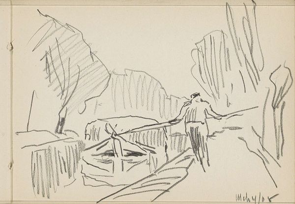 Curator: Jean-François Millet, most known for his paintings of rural life, created this small pen and ink drawing, "Landscape with Cattle," sometime between 1866 and 1867. It now resides here at the Art Institute of Chicago. Editor: It's a surprisingly airy drawing. A simple landscape populated by vague bovine shapes. There’s a kind of restless energy in it, all those quickly scribbled lines suggesting movement and a somewhat unsettled mood. Curator: Absolutely. Despite its modest size, it really does evoke that wide open feeling of the French countryside, and his commitment to showing the life of ordinary people shines through. Even in what could be a simple landscape. I am curious about your comment about the mood of unsettlement? Editor: Well, Millet often focused on the back-breaking toil of rural life, the constant struggle against nature. Perhaps here, that feeling lingers in the brisk, almost frantic linework. Are these animals content? Or are they searching, driven by the constraints of the land? We should also address the absence of the shepherd! What’s the historical context surrounding land enclosure and the socio-economic changes pushing peasants off the land? Curator: You’re nudging at the tension within the Realist movement itself – celebrating the natural world and the nobility of work, while simultaneously documenting labor and economic hardships, sometimes within the same frame. Even this landscape itself isn't pristine; we can feel the pressures of work and animal husbandry in those sketchy hills, almost a foreshadowing of contemporary challenges related to sustainability, consumption and commodification. And the way that ink bleeds just a bit into the paper…it speaks to a vulnerability in the environment itself. Maybe I’m just projecting? Editor: Maybe. But consider this projection as a mirror reflecting larger anxieties surrounding the relationship between humanity and nature. The immediacy of drawing also captures a particular kind of observation—that which is rooted in fleeting experiences. What we are seeing may simply be a moment, the essence of a relationship between animals and environment, not some constructed historical analysis, but a lived encounter. Curator: Which might be a useful caution against reading any single narrative into the work... Millet's own lived encounter is now filtered through layers of time, interpretation, and changing world events. Editor: Precisely, making us more acutely aware of art as a process involving mutual co-creation. "Landscape with Cattle" doesn't just represent; it invites us to connect these scattered strokes of ink, constructing meaning within an ever-shifting landscape.