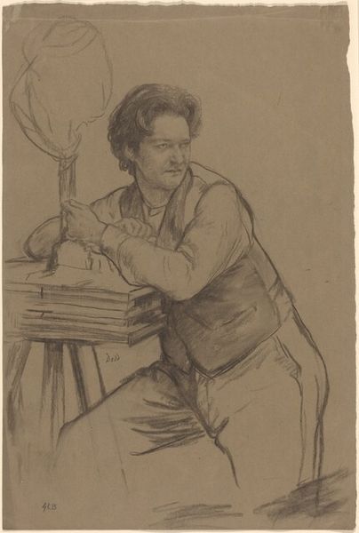 Curator: Welcome. Before us, we have Francis Dodd's "Portrait of Jacob Epstein," a graphite and pencil drawing from 1909. Editor: Oh, moody. I like it. It’s intimate, even though the figure's not looking at us. The somber tones draw you in. Makes me wonder what he's thinking. Curator: It's intriguing how Dodd chose to portray Epstein. There is a palpable tension between the subject’s contemplative expression and the unyielding stone he's working on. Epstein’s averted gaze creates a sense of depth, pulling the viewer into his inner world. Editor: He's literally and figuratively shaping something. That tension is amazing! You feel like the raw stone is full of hidden meanings, of future potential...almost as though the man himself has depths. Curator: Indeed. And observe how Dodd uses graphite to capture the texture of the stone, contrasting it with the softer lines of Epstein's features. Consider how those deliberate lines signify not just an outer likeness but a psychological state. Editor: It does have that charged stillness that tells you, under the surface, things are churning. What’s interesting is knowing this is Epstein, later famous in his own right, caught here in an early moment. Almost like catching a myth in the making. Curator: Precisely. The work offers a snapshot into the early careers of two significant figures in the art world, and consider that a portrait often functions as a kind of cultural mirror. Editor: Right? It’s like history observing itself, captured in monochrome. I feel like I'm not just looking at Epstein but at a particular moment in artistic history. It's a drawing but holds all the weight of sculpture...all the dreams of a generation on the cusp of modernity. Curator: Well said. Dodd manages to convey both the personal and the universal, reminding us of the power of art to immortalize, reflect, and question. Editor: Yeah. This piece has legs. Definitely stays with you after you’ve moved on. It makes you feel the quiet of creation—even after all these years.