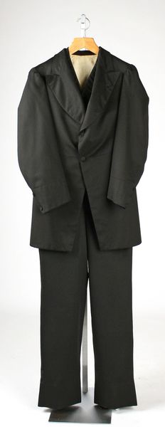 This pair of 'Military Trousers' by Marc Jacobs in The Metropolitan Museum of Art, uses a combination of blue fabric with black stripes and gold button details. This evokes the structure and formality of a military uniform. Jacobs here masterfully uses visual elements like color and line to question established meanings. The dark blue shade is often associated with authority, while the stark black stripes running down the sides create a rigid, vertical emphasis. Together, these elements signify the order and discipline of military dress. Yet, the trousers are presented without the context of a full uniform, abstracted from their original purpose. The use of gold buttons adds a touch of elegance and luxury, further destabilizing the seriousness typically associated with military attire. This interplay of sobriety and luxury challenges the viewer to reconsider fixed notions of power and representation. Through these formal choices, Jacobs doesn't just create a visually interesting object, but also engages with broader cultural codes.