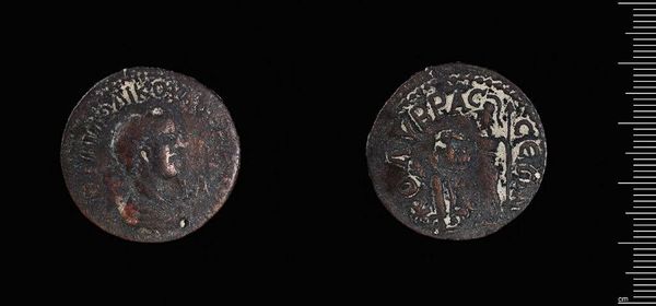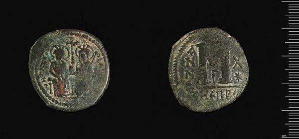 Curator: The weight of this medallion! You can really sense its age and history just by holding it. Editor: It has such a somber presence. The patina and wear give it a texture that evokes the past. Curator: Indeed. What we have here is a Coin Medallion of Sardis, minted under Gallienus. Think about the labor involved! Mining, smelting, engraving—it’s all there in this small object. Editor: The low relief carving of Gallienus is quite striking, isn't it? The formal lines create a sense of stern authority. Curator: And consider its function: more than just currency, it represents power, trade, and the social fabric of the Roman Empire in Sardis. Editor: Absolutely. Its composition—the portrait on one side, the inscription and architectural image on the other—speaks to the values of that society. Curator: Precisely. A fascinating look at the economics and labor of the era, compressed into a single artifact. Editor: A poignant reminder of the layers of meaning an object can hold.