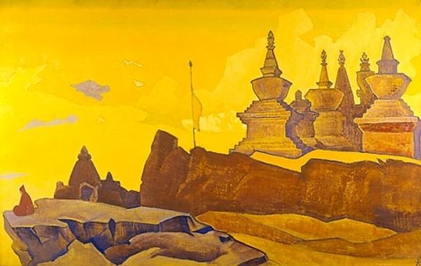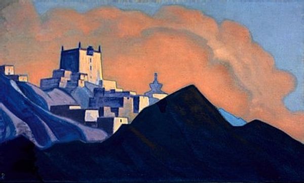 Nicholas Roerich made ‘Ladakh’ with paint, though what kind I can’t be sure. It’s all about layering, and a limited palette, building up the image with these soft strokes. You know, like things emerging slowly from a haze. It feels like a dream, doesn't it? The colors are muted, the blues and purples bleeding into each other. Look at the texture—it’s almost like it’s been scrubbed onto the surface, creating this feeling of distance. There’s a chunk of darkness there in the lower left corner. Is it a boulder? A building? It grounds the whole thing, gives it weight, and sets the stage for the rest of the scene to unfold. Roerich made lots of paintings of mountains, spiritual places. You can see echoes of Symbolism here, with its emphasis on mood and atmosphere. But really, it reminds me of Marsden Hartley, with his rugged landscapes and his interest in the spiritual. Both painters, in their own way, searching for something beyond the visible world.