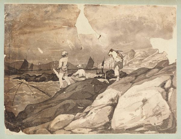 Louis Ducros captured this scene, "Viewers at the Departure from the Port of Luogo Vivo," with watercolor, depicting a group of figures observing a departure. Consider the gesture of farewell – one figure stands apart, his hand clasped to his chest, embodying a complex mix of duty and emotion. This isn't merely observation, it’s participation in a ritual of separation that dates back to antiquity. The gesture echoes across time, reminiscent of Roman orators seeking divine favor, or even figures in Renaissance paintings expressing grief or piety. Notice the figure standing on the edge; it's a visual marker for the threshold between known and unknown. This can be seen in ancient Egyptian art and religious iconography, marking a transition point, imbued with the psychological weight of uncertainty and hope. The emotional intensity of departures touches upon our collective memory and the recurring human experience of saying goodbye. The symbol of farewell engages us on a profound level. The cyclical nature of departures and returns, and the gestures and symbols that accompany these events, resurface and evolve, mirroring our ever-changing world.