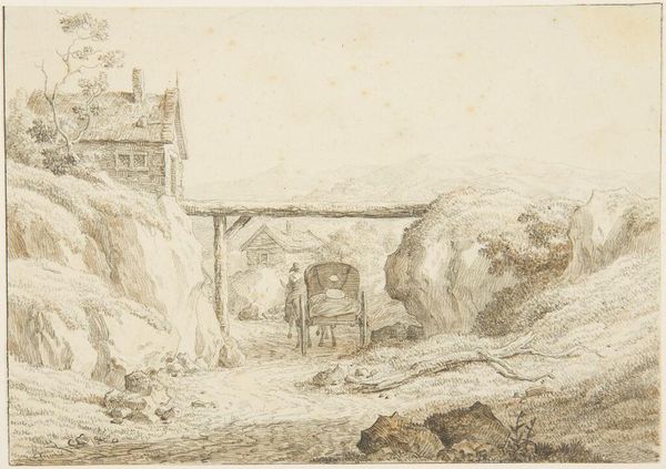 Editor: Rembrandt van Rijn's "Landscape with a Cottage and a Large Tree," a small etching, feels incredibly intimate. What strikes me is how the dark, dense foliage contrasts with the open, airy sky. What do you see in this piece? Curator: Indeed. The interplay of light and shadow is paramount. Note how Rembrandt uses the density of line to create a sense of depth and texture. The formal arrangement directs the eye towards the central cottage, creating a focal point within the broader landscape. Editor: So, it's less about the literal representation of a landscape and more about the formal elements at play? Curator: Precisely. The etching technique itself—the deliberate use of line and tone—becomes the subject. It is a study in contrasts and visual balance, a testament to Rembrandt's mastery of the medium. Editor: That emphasis on technique really changes how I see the image. Thanks! Curator: My pleasure. Considering form allows a richer appreciation of artistic intent.