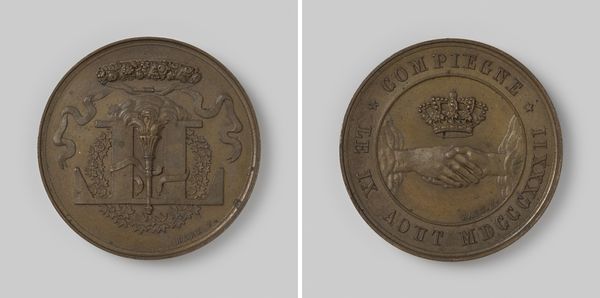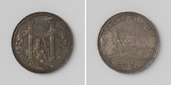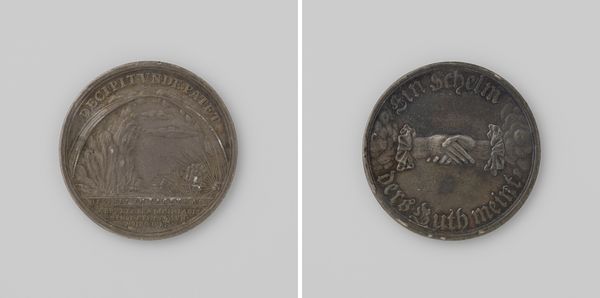 Editor: Here we have a 1688 print currently held at the Rijksmuseum, titled *Geboorte van Jacobus Frans Eduard, prins van Wales* – or, *Birth of James Francis Edward, Prince of Wales.* I’m really struck by the contrast of the intimate scene on one side, against the formal crown on the other. How do you interpret the imagery used here? Curator: It's fascinating how seemingly disparate images converge here. We see the symbolic weight carried by depictions of childbirth contrasted with emblems of power and succession. Childbirth, across cultures, holds powerful significance, from fertility rites to familial continuity. The placement of that scene in such proximity to a crown seems to amplify its meaning and underscore its role in succession. The inscription adds another layer of complexity: What historical understanding does this piece reveal through this use of symbols? Editor: It's almost as if it's stating something beyond the simple birth of a royal! Curator: Exactly. Think of visual communication, where the image acts as text, communicating specific ideologies or political positions. Given that the piece hails from 1688, a year of immense political turmoil in England, what potential message could these symbols convey to contemporary viewers? Editor: So the symbols speak to not just birth, but political strategy. How subversive! It feels like a medieval tapestry. Curator: Yes! Just as a tapestry served as both decoration and didactic device, here we have something small that performs the same function! Perhaps this work encourages the viewer to consider a continuous flow of time through dynasties by invoking these symbolic references to the past and anxieties about the future. What did you learn about the past through the crown and child depicted here? Editor: I now understand how charged even a birth announcement could be! Curator: Indeed. It underscores the powerful emotional and cultural narrative conveyed in art, demonstrating history made meaningful through imagery.