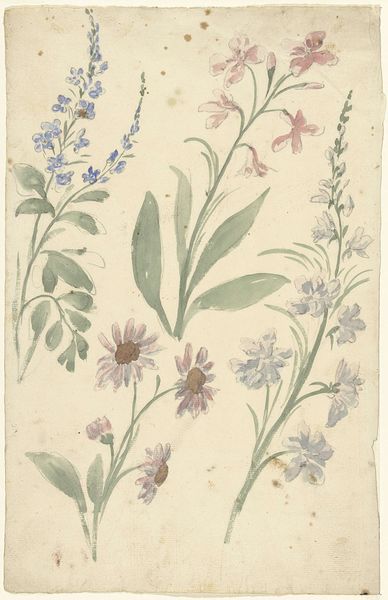 Elias van Nijmegen made these Studies van ridderspoor, anjer en Oostindische kers using watercolor on paper. The wispy strokes of the watercolor give the plants a delicate, almost ethereal quality. But consider the paper itself – handmade, in an era before industrial production really took hold. Each sheet would have been unique, bearing the marks of the vatman who pulled the pulp, and the coucher who pressed out the excess water. Even the sizing, usually a gelatin made from animal hides, contributed to the final character of the surface. The relative scarcity of good paper in the 17th and 18th centuries meant that every mark mattered. Sketches like these were often made in preparation for larger, more elaborate compositions, perhaps tapestries or murals. The labor involved in these large-scale projects would have been considerable, involving teams of artisans working under the direction of masters like van Nijmegen. So, next time you see a watercolor, think about the layered processes of its making – not just the artist’s touch, but the many hands that contributed to the material substrate itself.