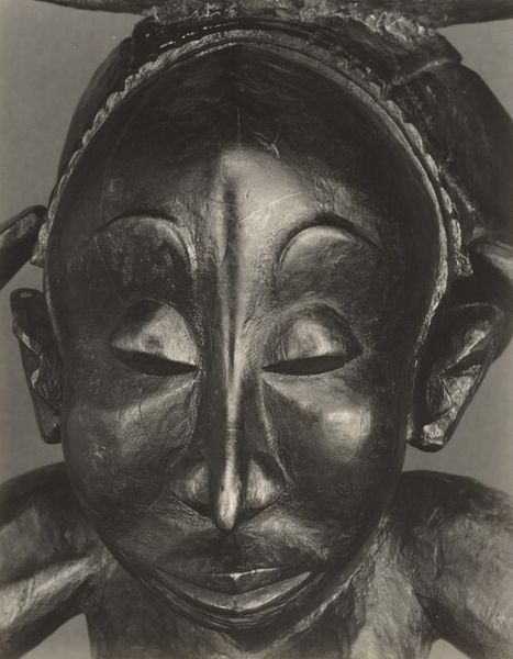 This is a photograph of a carved wooden figure, made by Morton Schamberg. The tone is warm, almost sepia. But focus on the image of the carving itself. Look at how the figure is formed. I love the way the wood grain feels both raw and refined. There's a real process at play here, you can almost feel the artist's hand at work. Note the incised lines that suggest ribs, and the way the face is rendered with simplified, almost geometric forms. There’s something so simple, yet profound, in the way the artist has brought out the essence of the figure. It makes me think of other modernists, like Brancusi, who were also interested in abstracting the human form. It’s like Schamberg is having a conversation with them across time and space, trying out new ways of seeing and representing the world around us. It's a powerful reminder that art is an ongoing dialogue.