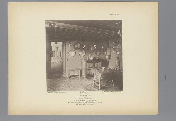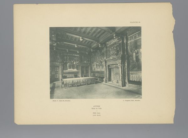This is a photograph by G. Choppinet showing a room in the Hotel Gallet in Brussels. Without a date, it is hard to say when it was made. But the architecture and interior design suggest it was a relatively recent historicist pastiche, made in a period when the rising wealthy classes liked to surround themselves with romanticized images of the past. The ‘Gothic style’ room features a beamed ceiling, paneled walls, and a large fireplace. The room is furnished with heavy wooden chairs and a large table, all designed to evoke a medieval atmosphere. The presence of these ‘period rooms’ speaks volumes about the self-image of the elite classes, whose wealth allowed them to create these elaborate displays of taste and historical awareness. To understand this image better, one would research the history of interior design, the economic and social conditions of the late 19th century, and the ways in which the past was being reinterpreted and consumed at that time.