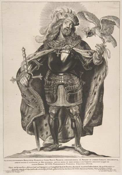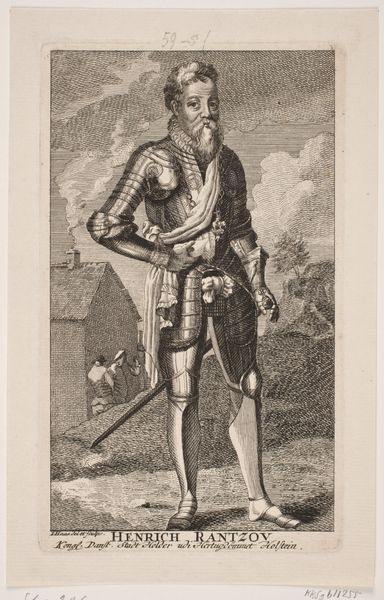 Editor: So, here we have Pieter van Gunst’s 1716 engraving, “Portret van burggraaf Patrick Chaworth van Armagh,” housed in the Rijksmuseum. It's such a formal portrait. What stands out to me is how much detail there is despite being a print. I am wondering what story do you see this piece telling us? Curator: This portrait speaks volumes about the socio-political status conveyed through visual imagery in the early 18th century. Notice how the composition reinforces a sense of aristocratic power and stability. We must think of the engraving not just as an aesthetic object, but also as a mechanism for disseminating status. Think about the context of portraiture in this period - who were these images for, and what purpose did they serve in the broader culture? Editor: It's interesting to consider it as a piece of propaganda, not just art. I guess all that ornamentation, the armour, and the dramatic curtain in the back contribute to this image of power you mentioned. Did the patronage system play a role in producing art like this? Curator: Absolutely. The patronage system was integral. It funded these works but also dictated their content and style. The visibility conferred by art such as this could either consolidate or undermine elite networks and power. Consider what this image does not show, as much as what it does. Who is excluded from this narrative of power? Whose labor made such displays possible? Editor: That definitely gives me a lot to consider. Thanks for putting this engraving into that kind of historical context! Curator: Indeed. By considering how art circulates within social and political systems, we can begin to see its profound influence in shaping our understanding of the world.