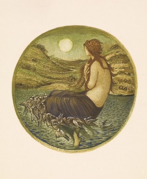 Editor: Here we have Franz von Stuck's "Erote riding a dolphin," created around 1912 using oil paint. There's a really interesting push and pull between the classical subject matter and something more surreal, a darker kind of fairy tale maybe? What do you see in this piece, how would you interpret it? Curator: I'm struck by the way Stuck uses this mythological scene to speak to the societal anxieties of his time. Considering the prevalence of classical imagery in the art world, it seems relevant to examine the work in connection with a challenge to traditional norms in the early 20th century. The Symbolist movement often grappled with these ideas, framing traditional mythologies through the lens of modernity. Editor: I see what you mean. It's like he's using a familiar story to explore some pretty unfamiliar feelings. Curator: Exactly. And how does this portrayal of the erotic subvert traditional power structures often embedded within classical art? Think about who usually holds power in these scenes and who's riding who, in this case... Also, given the social context of shifting gender roles at the time, could this image be interpreted as a commentary on evolving masculine identities? Editor: I hadn't really thought of it that way before, seeing the figure as destabilizing established notions. It makes you question if the artist intended to evoke conversations about liberation or more progressive forms of masculinity? Curator: And even broader than gender roles, this moment in time coincides with broader discussions of humanism, personal liberation and autonomy in different contexts, for different peoples, through wildly varying modalities. Editor: I guess it’s easy to just see a kid on a dolphin and miss all of the underlying historical tension in it. I'll definitely look at Symbolist art differently now. Curator: That is what is powerful in it for me. Appreciating its capacity to spark nuanced questions.