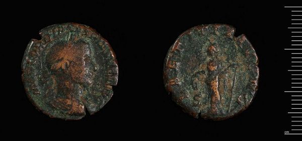 Curator: Here we have a coin, "As of Gordian III," currently held at the Harvard Art Museums. It's quite small, only about 10 grams. Editor: It feels heavy, doesn't it? Like history's weight in my palm, even just looking at the image. So worn and weathered, but still speaking. Curator: Well, consider the bronze material and the methods used to produce such coins. The materiality speaks to accessibility, and the processes of mass production used to disseminate the image. Editor: Right, and it’s not just an image—it's currency, power, a little story in everyone's pocket. I wonder how many hands this passed through, whose lives it touched. Curator: Absolutely, the coin acts as a material record of a complex political and economic system that supported an empire. Editor: I keep coming back to the patina, that green. It makes me think of time, decay, but also resilience. Still here, still being seen. Curator: And still informing our view of production and consumption across time. Editor: Exactly! Even in fragments, art whispers volumes.
