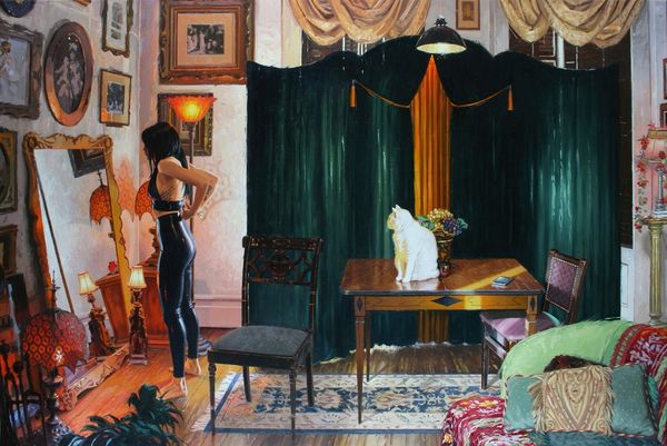 Njideka Akunyili Crosby created 'Home. As You See Me' to explore the complexities of cultural identity and belonging. This vibrant piece invites us to consider the artist's personal history within the broader context of postcolonial Nigeria. Born in Nigeria and now living in the United States, Crosby layers personal photographs and imagery drawn from Nigerian popular culture to construct a domestic interior. The figure of Dora Akunyili, the artist's mother, appears throughout the image, on television screens and repeated as a motif on the wallpaper. The phrase "Service to the People", which was Akunyili’s slogan during her time as Director General of the National Agency for Food and Drug Administration and Control, underscores the deep connection to family history and national identity. As art historians, we can delve into archives of personal photographs and news media, while also tracing the institutional history of Nigerian governance and consumer culture in order to better understand this artwork. By acknowledging these complexities, we recognize how art shapes, and is shaped by, cultural change.