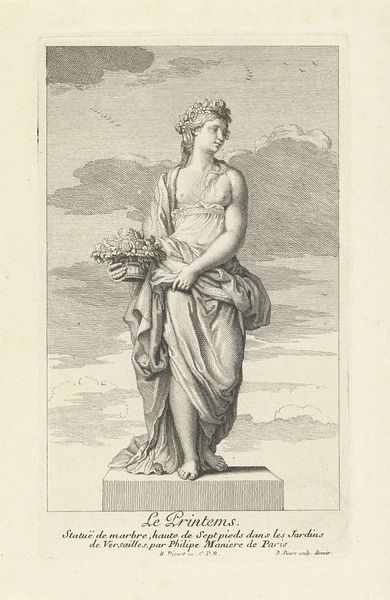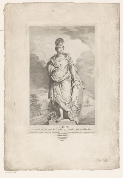 This print, "Azië," was made by Louis Desplaces in the early 18th century, using etching and engraving. The image is based on a marble sculpture in the Gardens of Versailles, but the print has its own story to tell. Consider the labor involved in its production. Each line was carefully incised into a metal plate. The artist would have had to master techniques of hatching and cross-hatching to build up tone and volume. This was painstaking, skilled work. The printmaking process also allowed for reproduction on a scale that sculpture never could. This speaks to emerging systems of artistic production and consumption. A print like this could circulate widely, bringing images of elite culture to a much broader audience. So while the subject is a marble statue, evoking the power and wealth of the French court, the print itself hints at a more democratic future for art. It's a reminder that even seemingly straightforward images carry complex histories within their making.