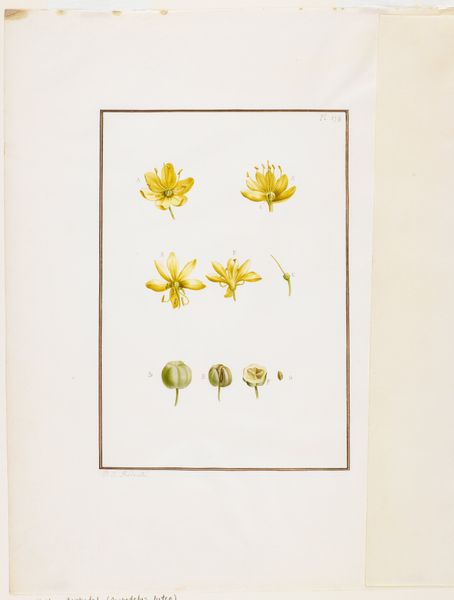 Editor: Here we have "Studie af blomster og løg," or "Study of flowers and onions," created in 1748 by Johanna Fosie, using gouache and colored pencil. I’m really struck by the contrast between the delicate rendering of the flower petals and the almost blunt depiction of the onion bulbs. What catches your eye about this piece? Curator: The material contrasts definitely pique my interest. Looking at the gouache, the opacity signals a distinct relationship to the pigments used. Where did they source them? Were they local? Also, consider the paper itself: its production, its cost. Was this high-quality paper for the elite, or a more readily available material reflecting a wider access to artistic production? Editor: That's interesting – thinking about the paper and pigment production as part of the art itself. I hadn't considered that. Curator: Exactly. This piece invites us to think about 18th-century material culture. How was this knowledge shared and who had access? This piece can tell us a great deal about gendered labor practices of the era if we can identify who cultivated and sold the pigments. Editor: So, reading this artwork means deciphering the story of its physical making and its place within a larger social framework? Curator: Precisely. We examine the artistic intention within a complex material reality, linking the aesthetic to the economic and social structures of its time. It’s about revealing how art is embedded in, and shaped by, the world around it. Editor: I never thought I could consider how a botanical drawing might shed light on the economics of artistic creation during this period. I'll look closer next time, beyond just the beautiful flower on the surface.
