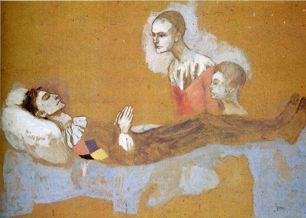 Curator: Standing before us is Edgar Degas’ "Laundry Girls Ironing," an oil on canvas completed in 1884. It's currently housed in the Musée d'Orsay in Paris. Editor: My first impression is exhaustion. The composition feels unbalanced, deliberately so, enhancing this palpable weariness. Curator: The skewed perspective is crucial. Degas moves away from academic precision to foreground a gritty, almost confrontational realism. Consider the tension between the gestural brushwork and the stark subject matter. Editor: Absolutely. It’s less about representation and more about the conditions of labor. Look at the iron itself—a heavy, hand-operated object demanding repetitive motion. You can almost feel the weight of it, the oppressive heat in this workshop. Curator: Precisely, there is something very tactile, not only in its heavy, materialized impressionist facture but also by depicting laborers at work—rendering something visually resonant for the rising classes. How do the flattened planes of color emphasize the physical strain? Editor: These materials aren't romantic. It's honest labor visualized. These women's clothing and working conditions weren’t some appealing backdrop to artistic endeavor, this labor provided that freedom for Degas. Curator: One could read that yawning figure as emblematic of the ennui inherent within capitalist structures, revealing an undercurrent of modern alienation within even genre painting. Editor: Degas is exposing what it took for privileged members of society to enjoy cleanliness, neatly pressed clothes. That bottle hints too, at possibly a coping mechanism for hard labor. It is hard to miss how painting offers social commentary beyond just its aesthetic qualities. Curator: Yes, Degas prompts us to reflect on not merely the "what" but also the "how" of existence. By breaking conventions, like atmospheric and linear perspective, he invites closer readings, challenging established codes and ideologies, beyond his own class limitations of vision. Editor: For me, viewing it through its materials, the social relations, and the women's work makes visible their exploitation in a rapidly changing capitalist world. It also asks what is at stake, beyond its pretty picture, that needs to be interrogated now more than ever.