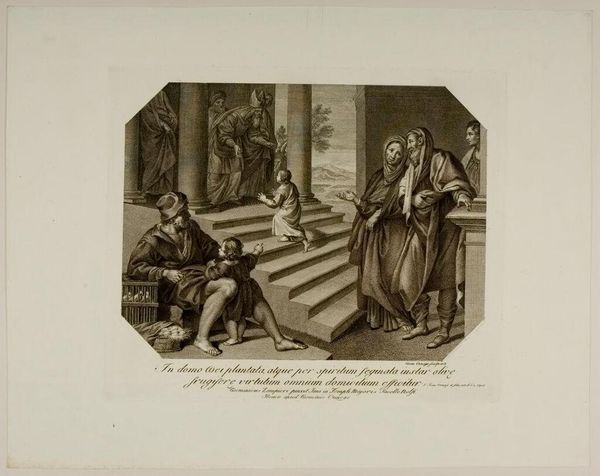 Curator: My first impression is of a chaotic but tender domestic scene, like a glimpse into a bustling, slightly disheveled home. Editor: Indeed. This is "Conjugal Gaiety," an engraving by Nicolas Delaunay. It captures a moment of family life with a touch of humor. Curator: I'm drawn to the woman breastfeeding. There's such vulnerability, and yet also a sense of matriarchal strength amidst the flurry. Editor: Consider the historical context. Representations of women, marriage, and family were central to the art market and social discourse. This piece possibly reflects Enlightenment ideals of domesticity. Curator: It’s so interesting how Delaunay frames this intimate moment with that elaborate oval border, adorned with fruit and foliage, elevating the everyday. Editor: Absolutely, a visual reminder that even mundane moments can be imbued with beauty and significance. Curator: It makes you wonder about the real story behind this 'gaiety'. What was life actually like for this family? Editor: That's precisely the power of art, isn't it? To invite us to ponder, question, and connect across time and cultures.