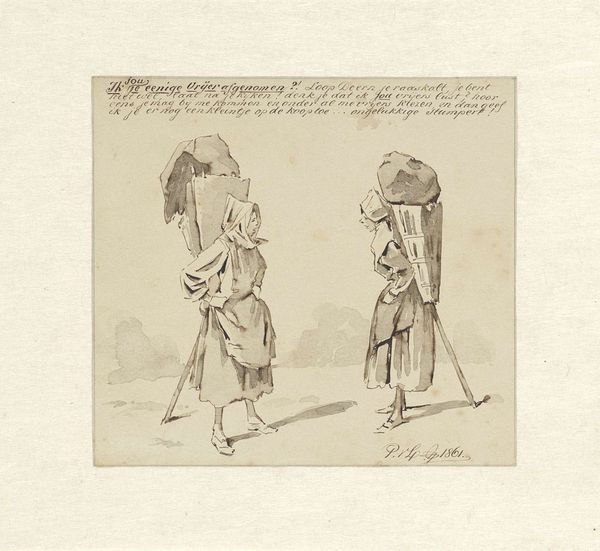 Joannes Bemme made this etching of a tinker and two women. Etching is an indirect method of engraving, where the artist uses acid to cut into the metal plate, allowing for the creation of finely detailed, linear designs. Bemme, born in the late 18th century, would have used this technique to portray scenes from everyday life, capturing the social fabric of his time. Here, we see a transaction taking place. The tinker, equipped with his tools, offers his services, while the women engage with him. Note the expressions and details rendered through etched lines. This image invites us to consider the social context of labor and trade in 18th and 19th century Netherlands. The very act of etching, with its careful planning and skilled execution, mirrors the tinker's own craft. Bemme elevates this scene of a common trade to an art form, blurring the line between everyday work and fine art.