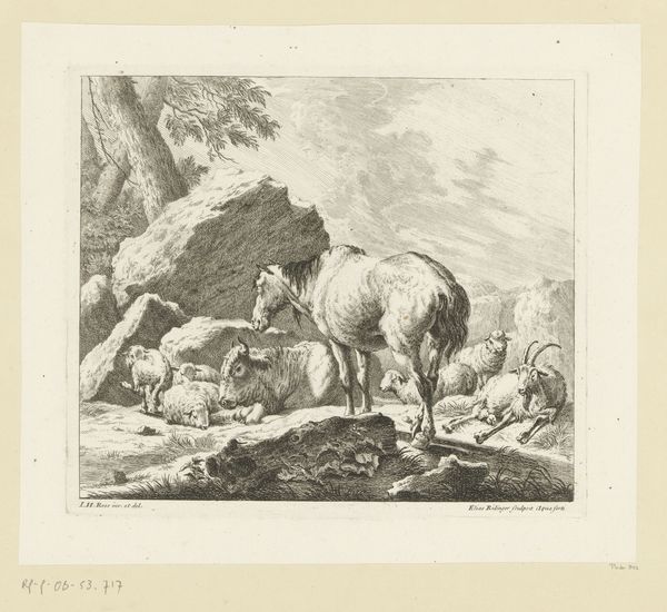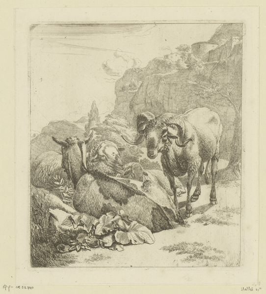 Johan Thomas Lundbye created this etching, "Sheep at a Dolmen," during Denmark’s Golden Age. The dolmen, a stone tomb, stands as a silent witness to centuries past, while the sheep represent the pastoral present. Lundbye, deeply invested in Danish nationalism, often depicted the country's landscape to evoke a sense of national identity and pride. Here, the dolmen, a relic of ancient inhabitants, becomes a symbol of Danish history, suggesting a continuous, unbroken connection to the land. The sheep, peacefully grazing, embody a romantic vision of rural life, untouched by industrialization and social change. There’s a palpable tension between the weight of history and the lightness of the present, between the solemnity of the tomb and the vitality of the animals. In a time of shifting national and cultural identities, Lundbye’s etching offers a serene, idealized vision of Denmark, rooted in its ancient past and thriving in its pastoral present.